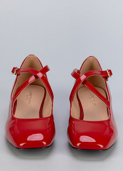• Эти туфли — идеальный выбор для стильных и смелых образов. Лаковая кожа придает модели роскошный блеск, а элегантные перекрещенные ремешки добавляют нотку ретро-шика.