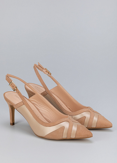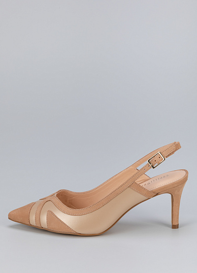 • Женские туфли бежевого цвета из натуральной кожи и замши от бренда Capelli Rossi. Модель с открытой пяткой - это неотъемлемая часть летнего гардероба. Заостренный носок, дополненный ремешком на застежке придает шарм. Плоская подошва на низком каблуке, за счет чего комфортны в носке на протяжение всего дня.