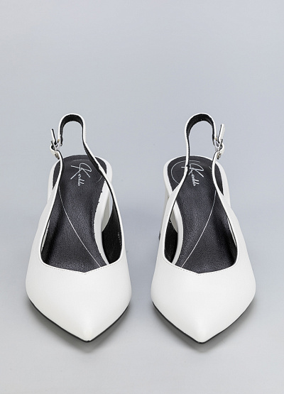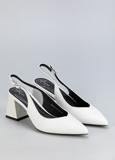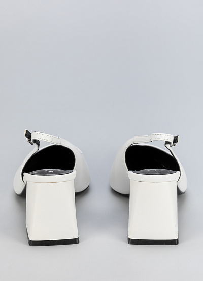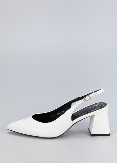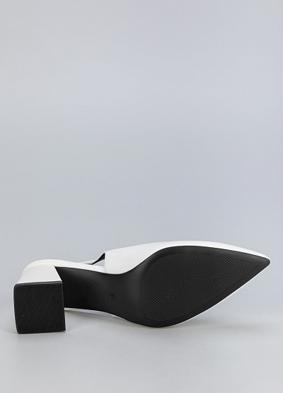 • Женские белые туфли из экокожи в элегантном стиле с открытой пяткой и устойчивым каблуком — стильное решение для офиса и особых случаев.