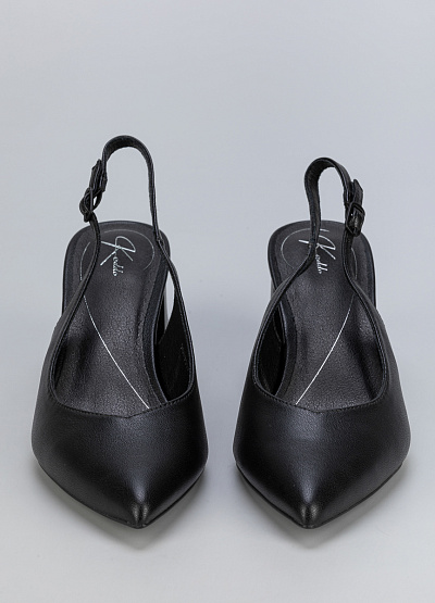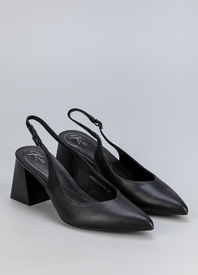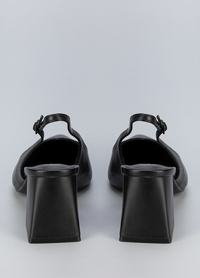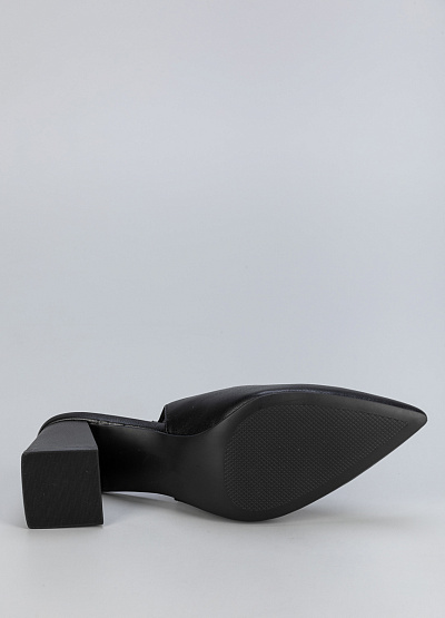 • Женские черные туфли из экокожи с открытой пяткой и устойчивым каблуком — элегантное сочетание классики и современности.