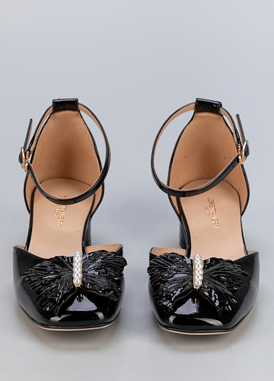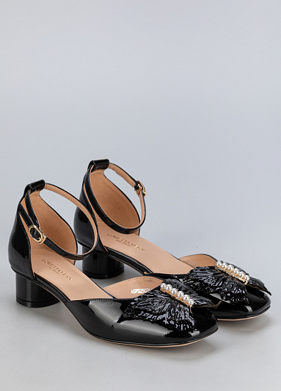 • Элегантные черные туфли из лакированной кожи с изысканным декором – идеальный выбор для особых случаев и стильных образов. Акцентная деталь в виде банта с жемчужинами придает обуви изысканность, а устойчивый каблук делает их удобными для длительной носки.