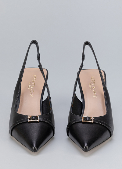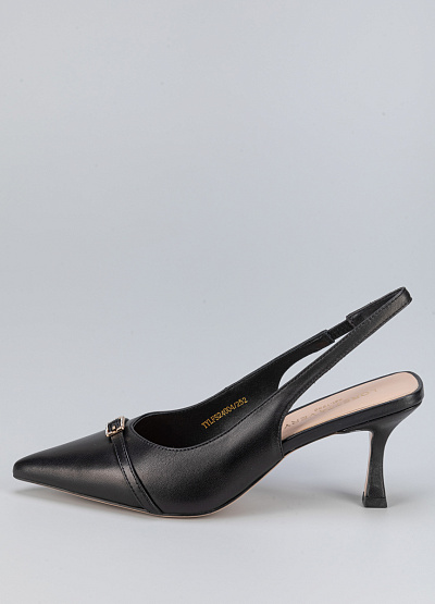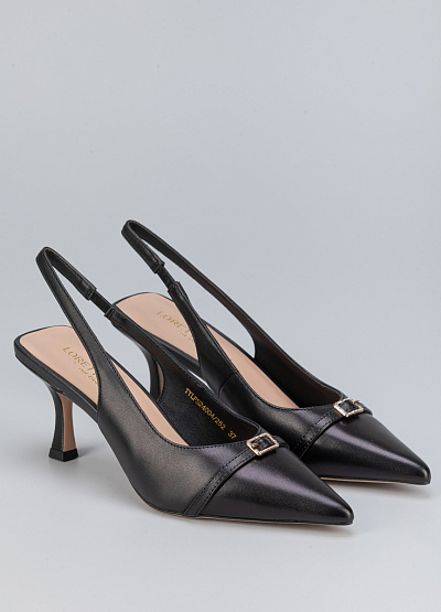 • Женские туфли черного цвета из натуральной кожи от бренда Loretta Very. Модель с открытой пяткой и изящным ремешком - это неотъемлемая часть летнего гардероба. Заостренный носок, дополненный ремешком на застежке придает шарм. Плоская подошва на среднем каблуке, за счет чего комфортны в носке на протяжение всего дня.