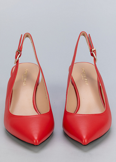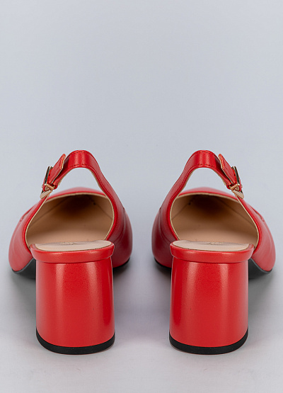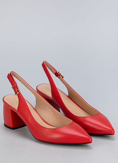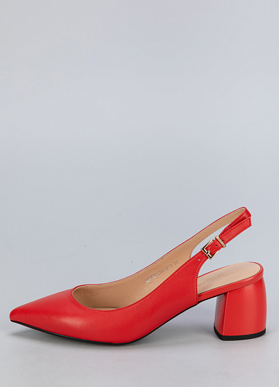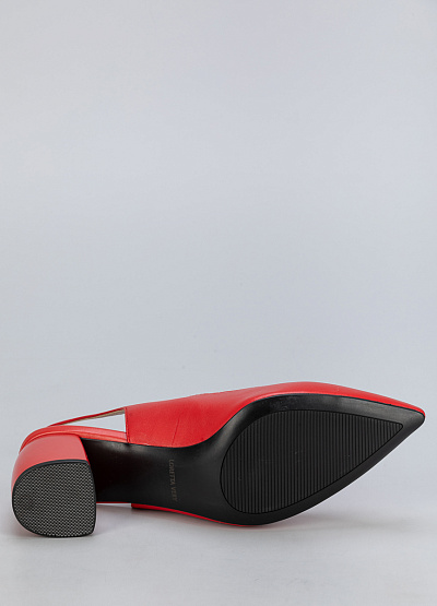 • Яркие и стильные туфли-лодочки красного цвета с открытой пяткой – элегантное дополнение к вашему гардеробу. Они идеально сочетают комфорт и трендовый дизайн, подчеркивая изящество женской ноги.