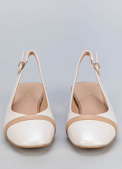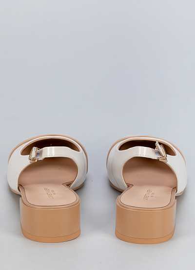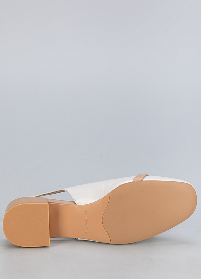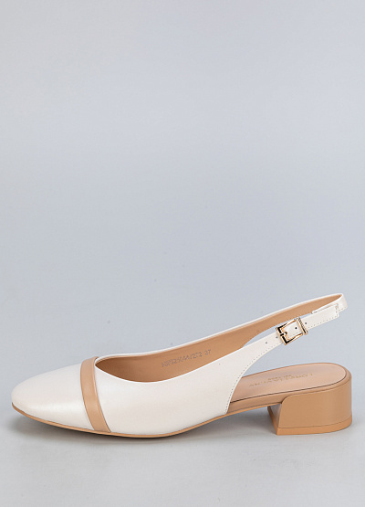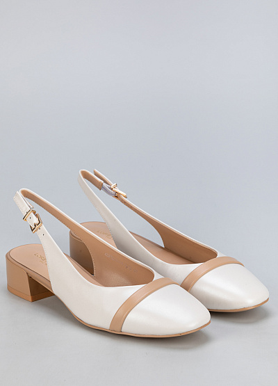 • Элегантные туфли-слинбэки из натуральной кожи в бело-бежевом исполнении – это сочетание комфорта, утонченности и универсальности. Они прекрасно дополнят как деловой, так и повседневный образ.