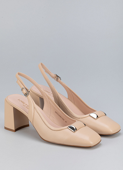 • Женские туфли бежевого цвета из натуральной кожи от бренда Loretta Very. Модель с открытой пяткой и изящным ремешком - это неотъемлемая часть летнего гардероба. Закругленный носок. Золотистая пряжка по центру придает шарм. Плоская подошва на среднем каблуке, за счет чего комфортны в носке на протяжение всего дня.