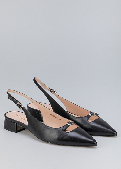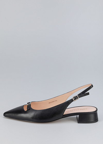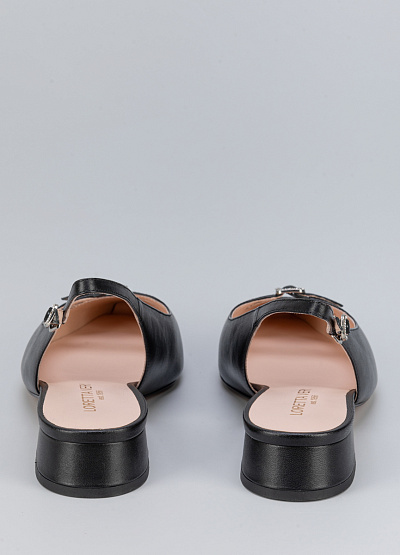 • Женские туфли черного цвета из натуральной кожи от бренда Loretta Very. Модель с открытой пяткой и изящным ремешком - это неотъемлемая часть летнего гардероба. Заостренный носок, дополненный ремешком на застежке придает шарм. Плоская подошва на низком каблуке, за счет чего комфортны в носке на протяжение всего дня.