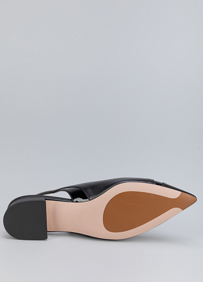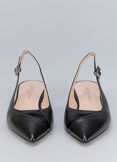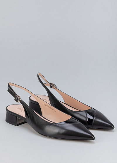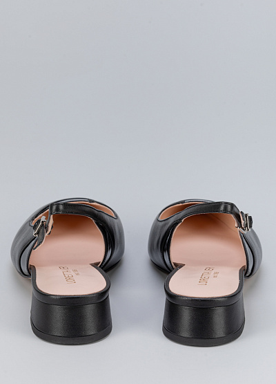 • Женские туфли черного цвета из натуральной кожи от бренда Loretta Very. Модель с открытой пяткой и изящным ремешком - это неотъемлемая часть летнего гардероба. Заостренный носок придает шарм. Плоская подошва на низком каблуке, за счет чего комфортны в носке на протяжение всего дня.