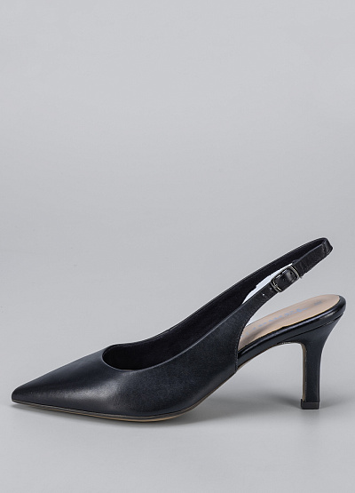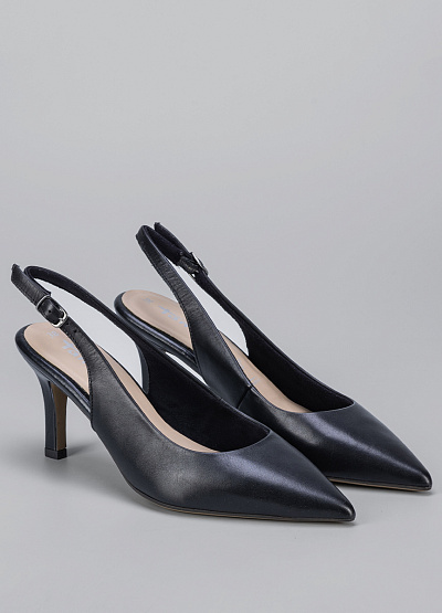 • Женские туфли черного цвета из натуральной кожи от бренда Tamaris. Модель выполнена в классическом стиле лодочек с острым носом и невысоким каблуком, который придает им изящный вид. Акцентная деталь - ремешок на щиколотке и пряжка на носке. Туфли будут красивым завершением любого образа.