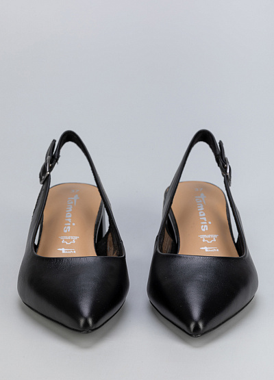 • Эти элегантные черные туфли-слинбэки созданы для стильных и уверенных в себе женщин. Остроносая форма и изящный ремешок придают образу утонченность.