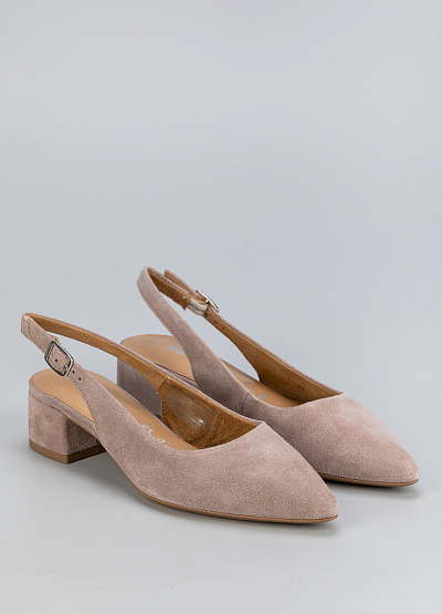 • Эти замшевые туфли-слинбэки в бежевом оттенке подчеркнут ваш элегантный стиль. Остроносый силуэт и аккуратный ремешок придают изысканность образу.