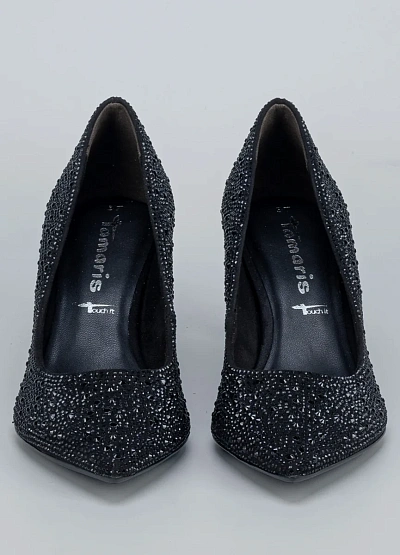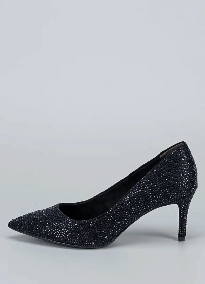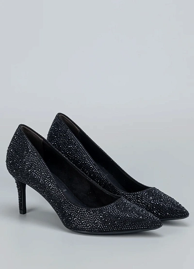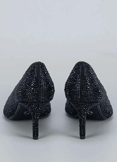 Эти лодочки на шпильке станут настоящим украшением гардероба. Покрытые множеством сияющих страз, они подчёркивают изящность силуэта и делают образ по-настоящему праздничным.