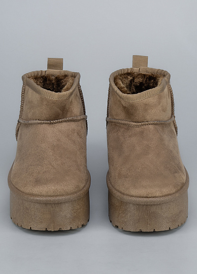 • Женские угги из экокожи от бренда Crosby. Закругленный носок. Петли для подтягивания сзади. Широкая подошва.