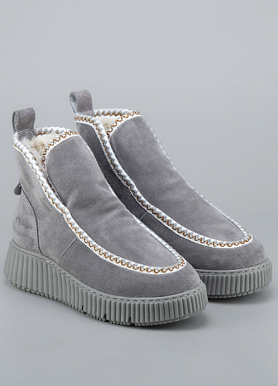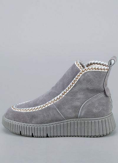 • Женские угги из замши от бренда Tamaris. Закругленный носок. Контрастная отделка по краям. Петли для подтягивания сзади. Широкая рифленая подошва.