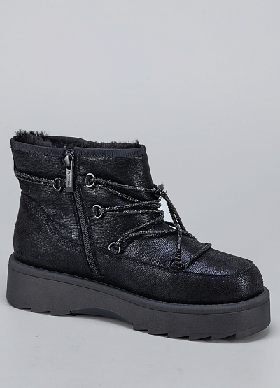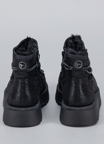 • Женские угги черного цвета из текстиля от бренда Tamaris. Модель на плоской, широкой подошве гарантирует идеальную поддержку стопы, делая каждую вашу прогулку легкой и комфортной. Их модный дизайн подчеркнет вашу индивидуальность и стиль. Эта модель идеально подходит для тех, кто ищет комфортную, но стильную обувь.