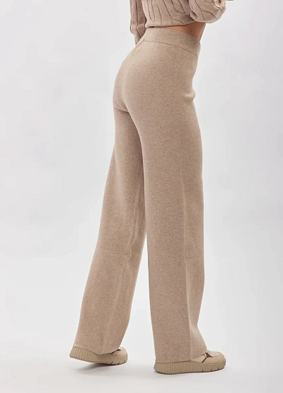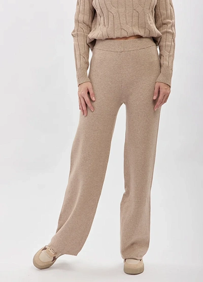 • Женские вязаные брюки прямого кроя — комфортная и универсальная модель, идеально дополняющая трикотажные комплекты. Мягкая фактура материала и спокойный бежевый оттенок делают брюки отличной базой для повседневных и уютных образов. Эластичный пояс обеспечивает удобную посадку, а прямые штанины визуально вытягивают силуэт и подходят для разных типов фигуры.