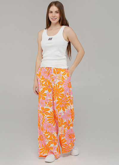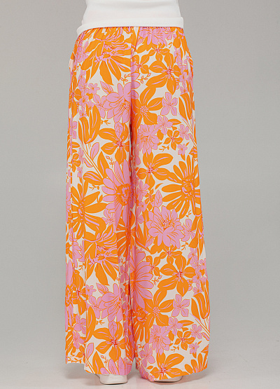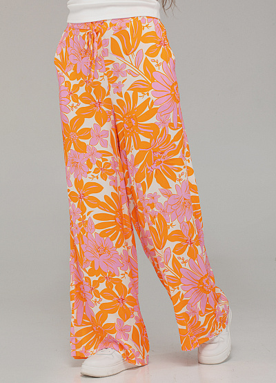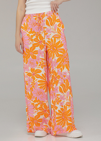 Лёгкие и свободные брюки с ярким оранжево-розовым принтом созданы для жарких дней, когда хочется выделяться и чувствовать максимум комфорта. Воздушная ткань, расслабленный крой и сочные цвета — всё, что нужно для стильного настроения.