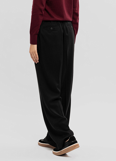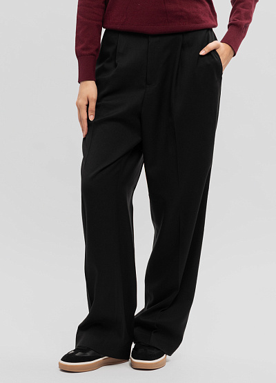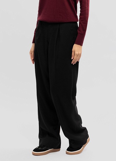 • Женские широкие брюки Thomas Graf в классическом чёрном цвете — стильная и современная модель, которая сочетает комфорт и элегантность. Свободный силуэт создаёт лёгкий драпированный эффект и визуально вытягивает силуэт, а мягкая ткань красиво ложится по фигуре, обеспечивая удобство при каждом движении. Аккуратные складки спереди добавляют объёма и подчёркивают актуальный дизайн. Модель идеально подходит как для повседневных городских сетов, так и для более строгих образов.