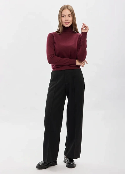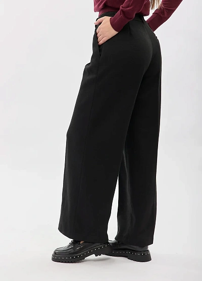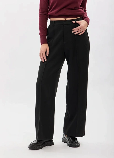• Женские классические брюки с высокой посадкой выполнены в универсальном чёрном цвете и отличаются лаконичным, аккуратным силуэтом. Прямой крой визуально вытягивает фигуру, а чёткие стрелки добавляют образу строгости и элегантности. Модель легко вписывается как в деловой гардероб, так и в повседневные образы, сочетаясь с трикотажем, блузами и жакетами. Плотная ткань хорошо держит форму и обеспечивает комфорт при носке.