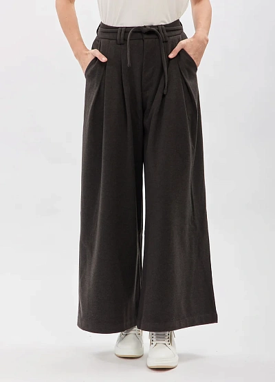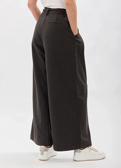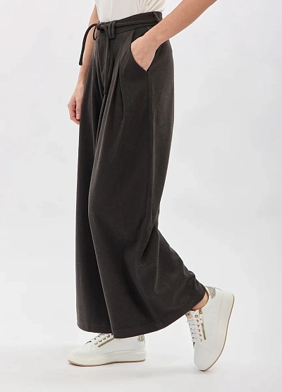 • Женские брюки-палаццо из мягкой костюмной ткани — стильная и комфортная модель, которая идеально подойдёт для повседневных и деловых образов. Широкий свободный крой обеспечивает лёгкость движений, а высокая посадка визуально вытягивает силуэт. Брюки дополнены декоративными складками спереди, создающими красивую форму, и текстильным поясом, который акцентирует линию талии и позволяет регулировать посадку. Мягкая ткань приятна к телу и красиво драпируется, формируя элегантный, струящийся силуэт.