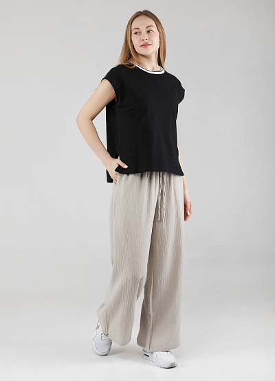 • Женские брюки из хлопка от бренда Thomas Graf. Модель свободного кроя. Два прорезных кармана. Эластичный пояс с шнурком.