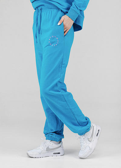 • Женские спортивные брюки из хлопка от бренда Thomas Graf. Свободная модель. Два боковых кармана. Эластичный пояс с шнурком. Логотип сбоку.