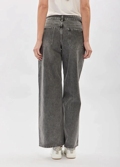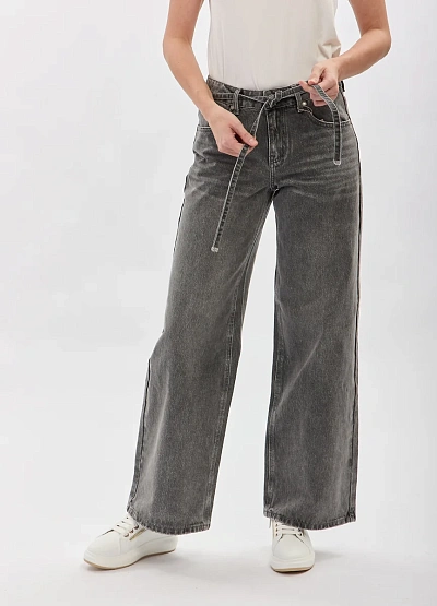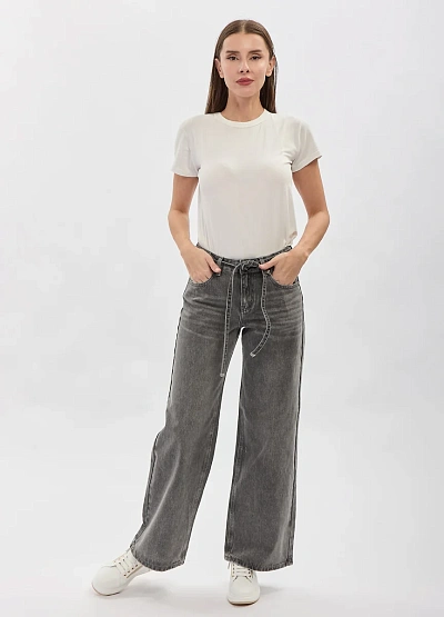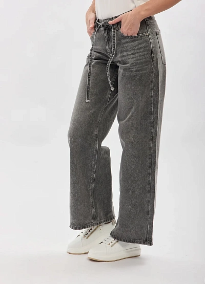 • Женские джинсы в сером оттенке — актуальная модель в стиле casual с современным свободным кроем. Прямые штанины формируют расслабленный силуэт, а высокая посадка подчёркивает талию и обеспечивает комфорт в течение дня. Модель дополнена поясом на завязках, который добавляет образу акцент и позволяет регулировать посадку. Универсальный дизайн делает эти джинсы удачной основой для повседневных городских образов.