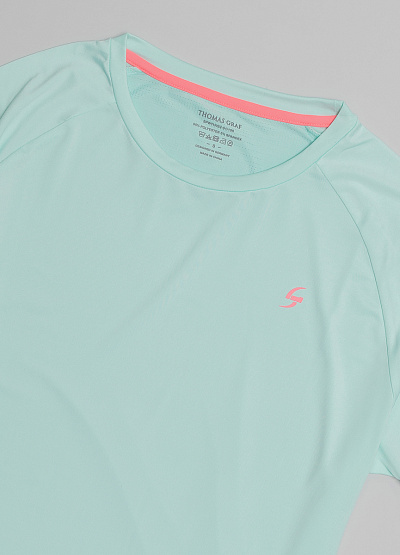 • Женская спортивная футболка ментолового цвета от немецкого бренда Thomas Graf.  Однотонная модель. Короткие рукава. Круглый вырез.