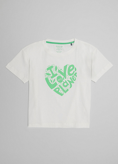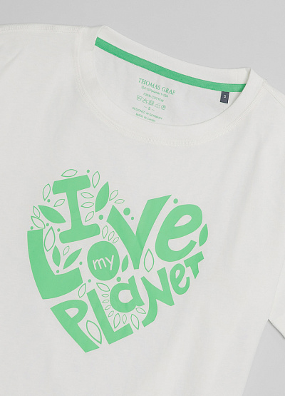 • Женская футболка белого цвета от немецкого бренда Thomas Graf. Модель выполнена из хлопка. Лицевая сторона декорирована крупным принтом. Короткие рукава. Круглый вырез.