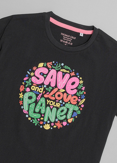 • Женская футболка черного цвета от немецкого бренда Thomas Graf. Модель выполнена из хлопка. Лицевая сторона декорирована крупным принтом. Короткие рукава. Круглый вырез.