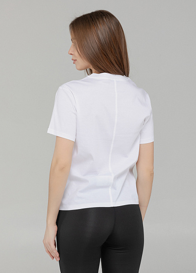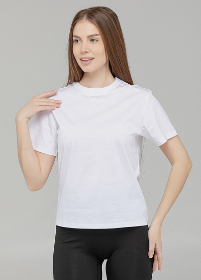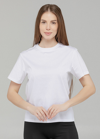 • Классическая женская футболка белого цвета — универсальная модель для повседневного гардероба. Изготовлена из мягкого и дышащего хлопкового материала, который обеспечивает комфорт на весь день. Минималистичный дизайн без принтов делает футболку идеальной базой для создания самых разных образов — от спортивного до офисного в стиле casual. Круглый вырез и короткие рукава придают модели аккуратный и аккуратно посаженный силуэт.