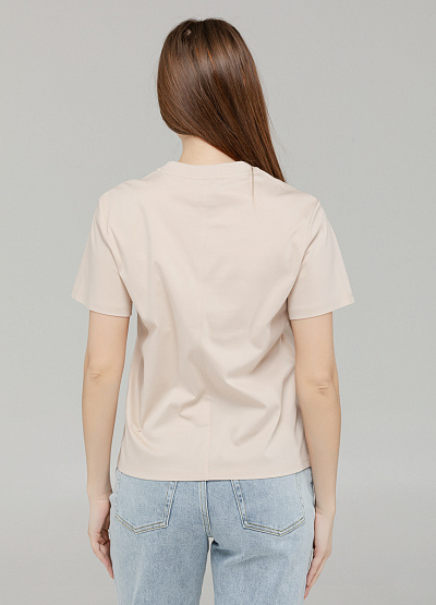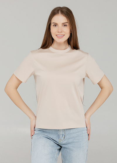 • Классическая женская футболка бежевого цвета — универсальная модель для повседневного гардероба. Изготовлена из мягкого и дышащего хлопкового материала, который обеспечивает комфорт на весь день. Минималистичный дизайн без принтов делает футболку идеальной базой для создания самых разных образов — от спортивного до офисного в стиле casual. Круглый вырез и короткие рукава придают модели аккуратный и аккуратно посаженный силуэт.