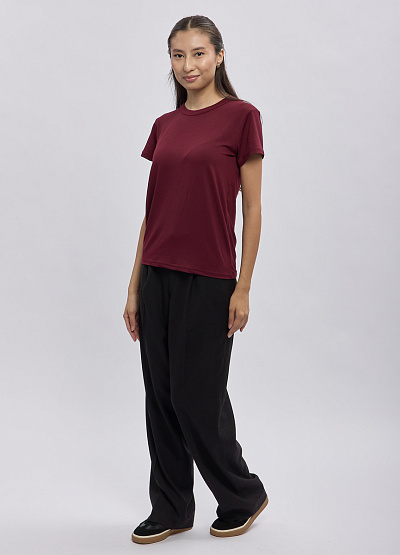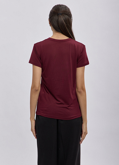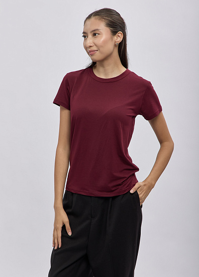 • Базовая женская футболка Thomas Graf глубокого бордового оттенка — универсальная модель, которая идеально вписывается в повседневный гардероб. Мягкий, приятный к телу материал обеспечивает комфорт в течение всего дня, а классический прямой крой подчёркивает естественную линию плеч и создаёт аккуратный силуэт. Круглый вырез делает футболку практичной и удобной в носке, а насыщенный цвет добавляет образу выразительности.