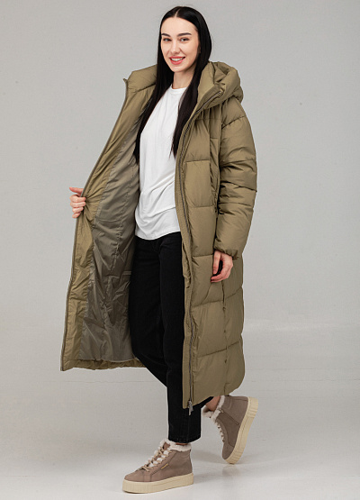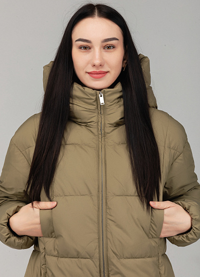 • Женская куртка от бренда Evacana. Модель прямого кроя. Капюшон. Застежка на молнии и кнопки. Два кармана по бокам.
