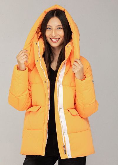 • Женская куртка от бренда LUSSKIRI. Модель прямого кроя. Капюшон. Застежка на молнии и кнопки. Боковые карманы. Логотип сбоку.