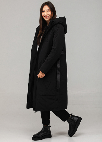 • Женская куртка от бренда Thomas Graf. Модель прямого кроя. Капюшон на кулиске. Застежка на молнии. Пояс в комплекте. Логотип сбоку. Разрезы по бокам на кнопках. Боковые карманы.