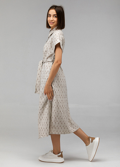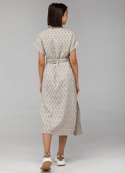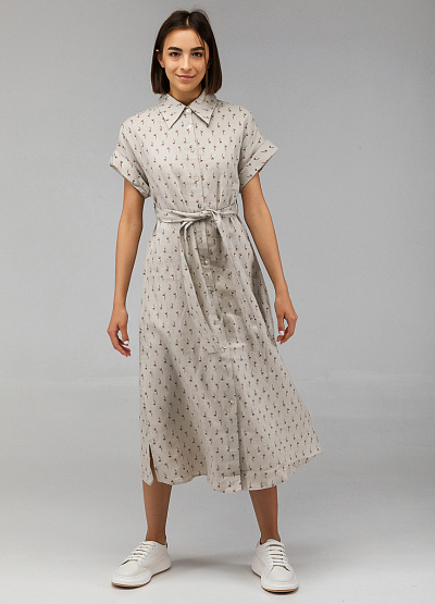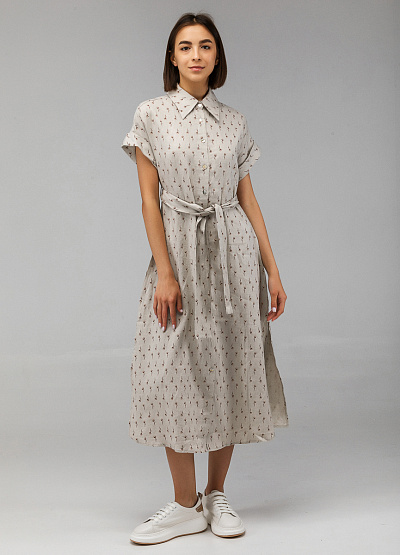 • Женское платье от бренда Thomas Graf. Свободный крой. Застежка на пуговици по всей длине. Пояс на талии. Принт. Отложный воротник. Короткие рукава. Разрезы по бокам.