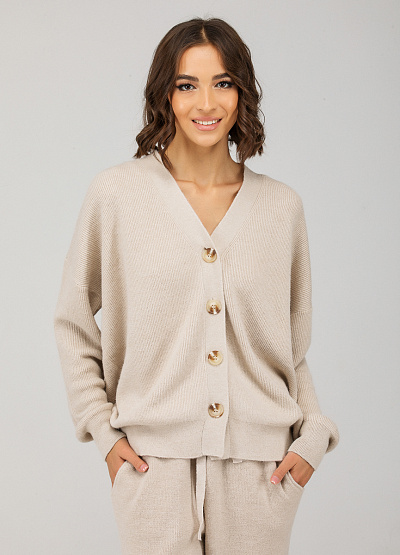 • Женский кардиган от бренда Thomas Graf. Модель свободного кроя. V-образный вырез. Застежка на пуговицы.