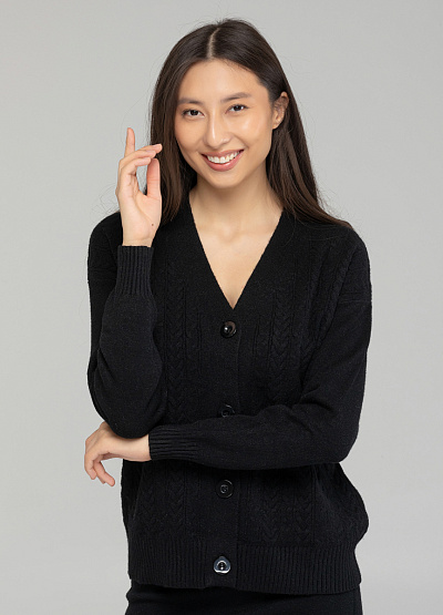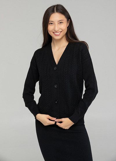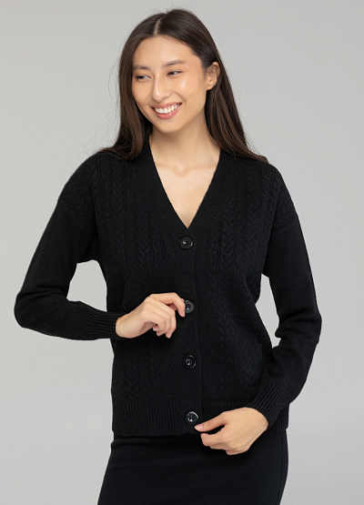 • Женский кардиган черного цвета от бренда Thomas Graf. Классическая форма этого кардигана с длинными рукавами и прямым кроем подходит для любого случая, а однотонный цвет добавит изюминку и яркость в ваш имидж. Модный приталенный силуэт подчеркнет достоинства фигуры и гармонично впишется в любой образ.
