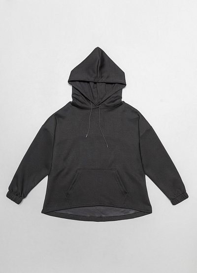 • Женское спортивное худи черного цвета от немецкого бренда Thomas Graf. Расклешенный крой. Передний карман кенгуру. Капюшон на шнурке.