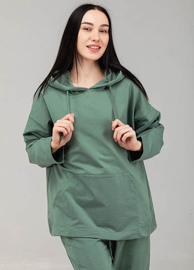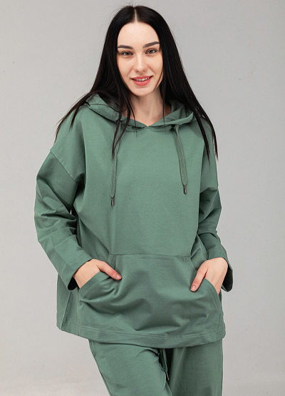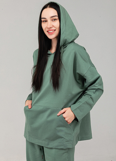 • Женское спортивное худи ментолового цвета от бренда Thomas Graf. Модель свободного кроя с объемным капюшоном и удобным карманом кенгуру. Оверсайз крой не сковывает движений. Изделие хорошо держит форму и одинаково стильно будет смотреться на разных типах фигуры. Минималистичный дизайн сделает эту базовую вещь самой любимой в вашем гардеробе и будет эффектно смотреться с любыми джинсами и штанами.