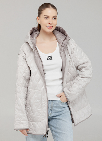 Куртка из стёганой ткани в бежевом цвете — практичная и универсальная модель для прохладного сезона.