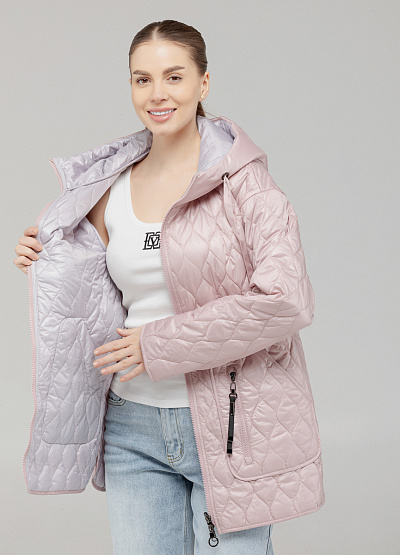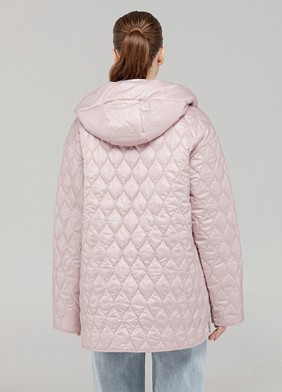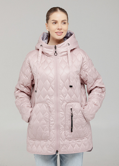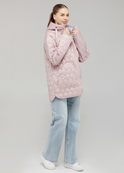 Стёганая куртка в пудрово-розовом оттенке — женственный акцент в базовом гардеробе на прохладную погоду.
