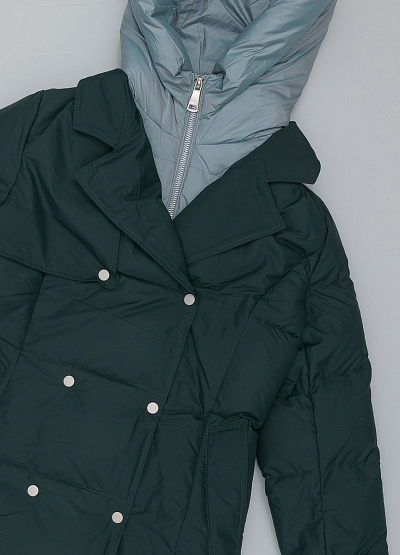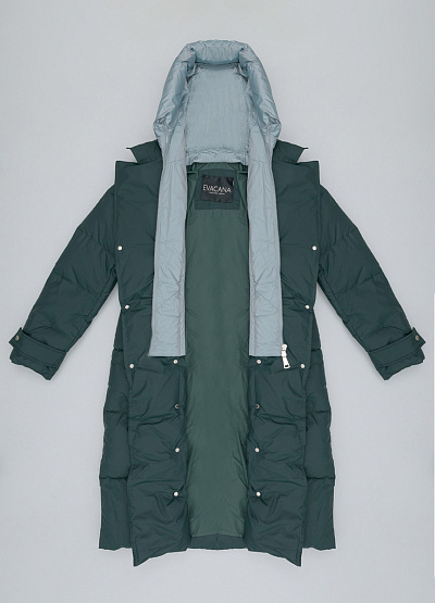 • Женская куртка от бренда Evacana. Модель прямого кроя. Капюшон. Застежка на молнию и кнопки. Два кармана. Манжеты на кнопках.