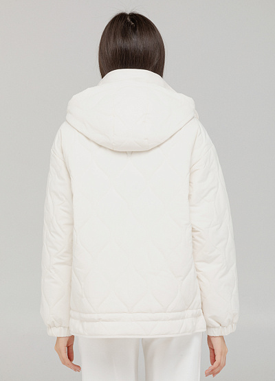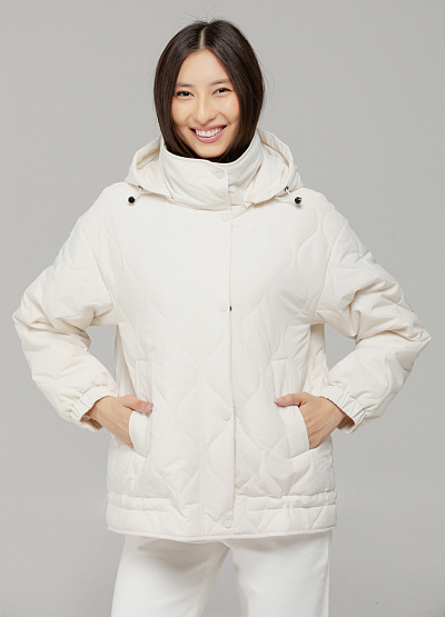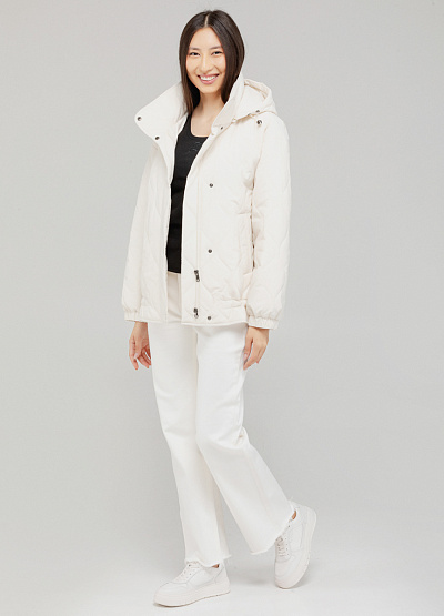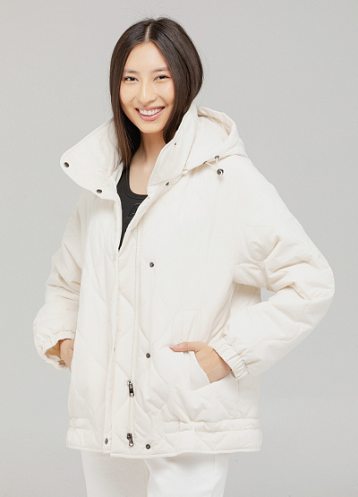 • Женская стёганая куртка цвета молочного айвори — уютный выбор для прохладных дней. Объёмный крой и мягкий материал создают непринуждённый силуэт с акцентом на комфорт.