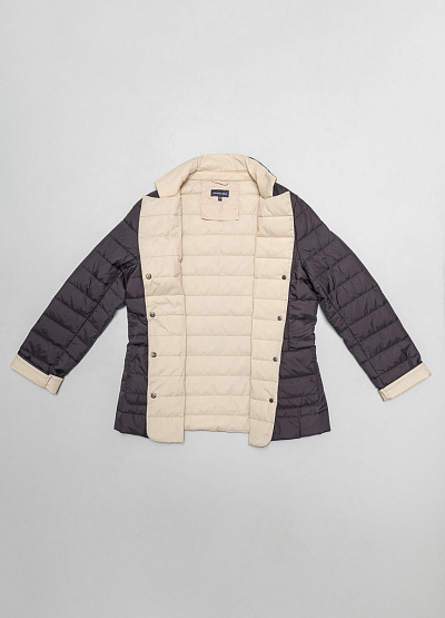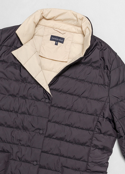 • Женская стеганая куртка от немецкого бренда Thomas Graf. Модель прямого кроя с воротником-стойкой. Застежка на кнопках. Два накладных кармана.
