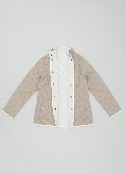 • Женская стеганая куртка от бренда Thomas Graf. Двухсторонняя модель. Прямой крой. Воротник-стойка. Застежка на кнопках. Два накладных кармана. Два кармана на молнии с другой стороны.