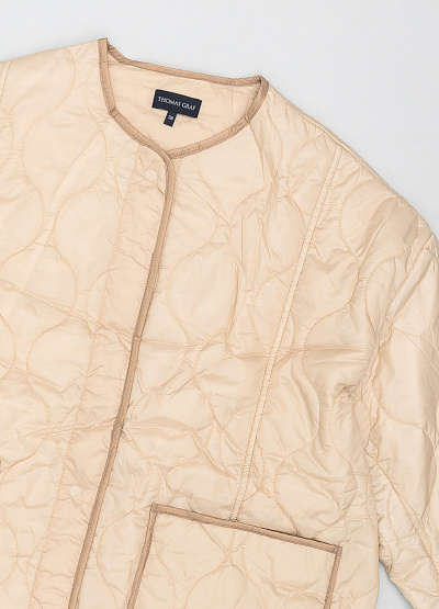 • Женская стеганая куртка от бренда Thomas Graf. Прямой крой. Круглый вырез. Застежка на кнопки. Два накладных кармана.