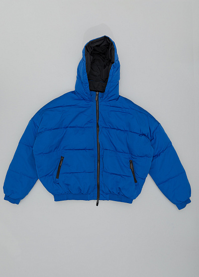 • Женская куртка от бренда Thomas Graf. Двухсторонняя модель прямого кроя. Капюшон. Застежка на молнии. Два кармана по бокам. Логотип сзади. Эластичные манжеты. Резинка по низу.