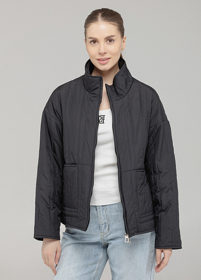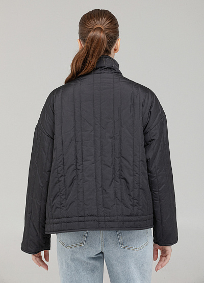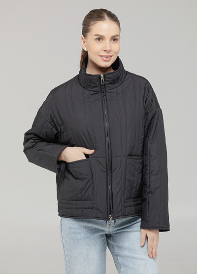 • Женская стёганая куртка чёрного цвета — универсальная модель для прохладной погоды в городском стиле. Лаконичный дизайн с высоким воротником делает образ собранным и современным.