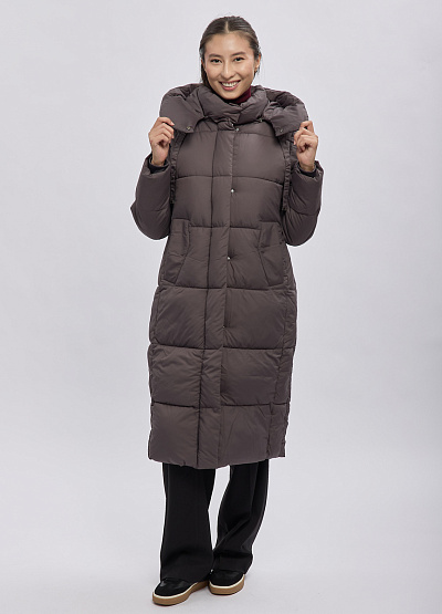 • Тёплое удлинённое пуховое куртка Thomas Graf в благородном серо-коричневом оттенке создано для максимального комфорта в холодный сезон. Объёмная стёжка равномерно распределяет утеплитель, сохраняя тепло даже при низких температурах. Широкий съёмный капюшон с утяжками надёжно защищает от ветра и осадков, а прямой крой обеспечивает свободу движений и позволяет легко сочетать пальто с любыми зимними образами. Двусторонняя молния и удобные кнопки делают модель функциональной и практичной в повседневной носке.